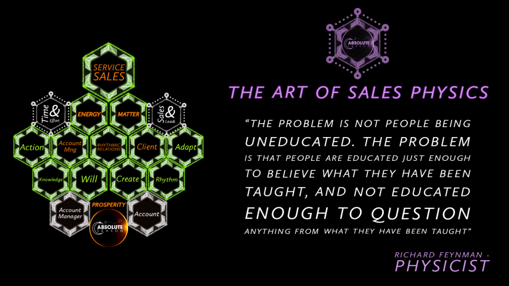 SALES●PHYSICS is the natural science that studies the MATTER of Sales, its fundamental constituents, its motion and behavior through space and time, and the related entity of ENERGY – in Coordination & Cooperation with both the ENVIRONMENT and the INDIVIDUAL.
