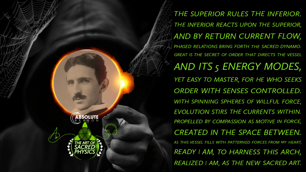 Thankfully Tesla observed and isolated the Creative-Life-Force “frequencies” and conceptualized harmonious principles to apply to our daily lives, in order to offer hope to the Individual who seeks to develop a relationship with the environment. He describes the 4 laws of Creation that become dancing spheres within the environment, as forming a creative rhythm of which numbers and equations become the marking signs. He then proceeds to supply the individual with 10 conditions to Adapt to the infinite expressions of life.